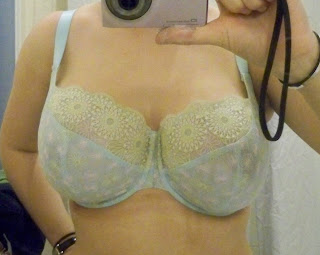 I tried on, for once. They have a lot more things that I like in this current collection than they did back in the fall. I've also gotten better at understanding how the experience works in the Bravissimo fitting room--it seems to work best if you ask to try on three or four specific styles, and then lurk outside your fitting room to ask for other bras as the fitters go by. It also helps to point things out to them in the catalogue. Anyway, these are the things I tried.